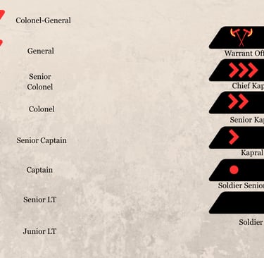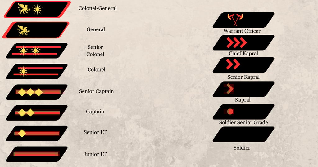 The Army is the "Sword of the Vozhd." It uses a Regimental System where local lords or Gormondic loyalists "own" the units, but answer to the High Command.