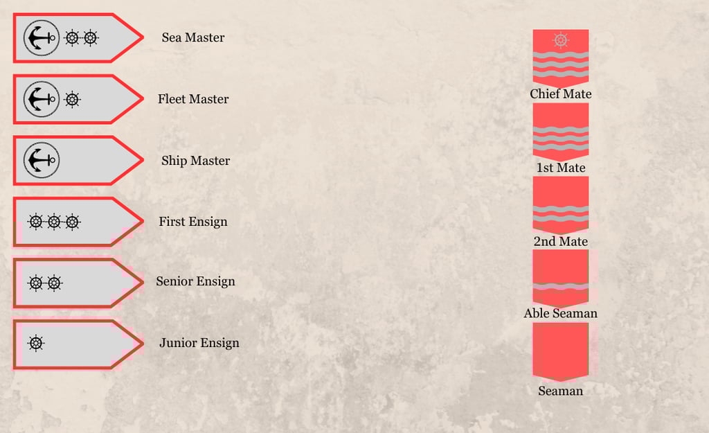 The Deepwater Squadron (Galleon-based): Newer, high-sided sailing ships designed for the long route to the Protectorate. These carry the heaviest naval guns but are few in number.