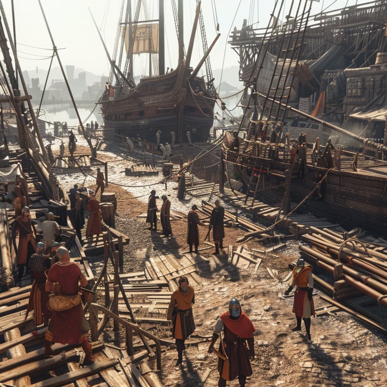 Armament: Deck-mounted torsion or early pneumatic artillery; Heavy crossbow crews