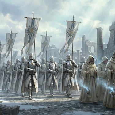 During this chaos, the Sanctorian Church intervened. Utilizing its newly formed military arm, the Stellarium, the Church restored order through a campaign known as the Great Reclamation. The old Sallian nobility was purged, the region was renamed Valsuer (Unity in Parleon), and the current Sovereignty was established, placing civil authority under the permanent oversight of the Sanctorian Church.