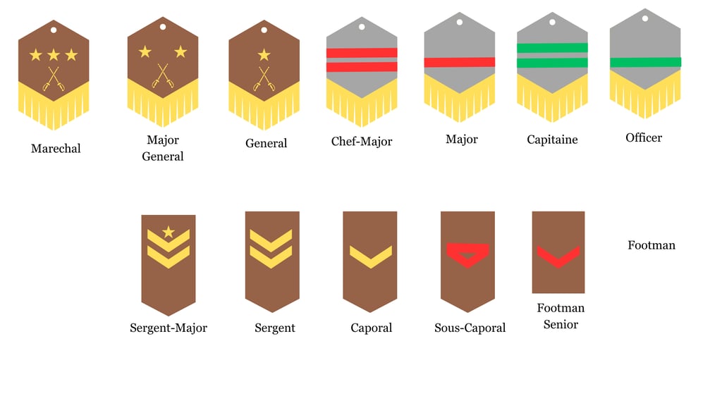 The army is made up of mostly conscripts with a small cadre of professional offices and Master-at-Arms.